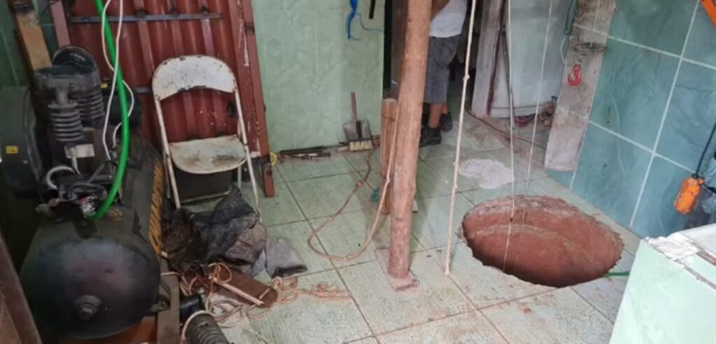 Ao sair do buraco, João se desequilibrou em uma estrutura de madeira na parte de cima da escavação.