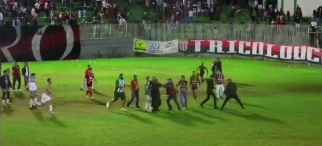 Uma partida de futebol válida pelo campeonato municipal da cidade de Capelinha no interior de Minas Gerais entre as equipes de Aranãs e Capivari terminou em uma verdadeira pancadaria. Veja no vídeo abaixo