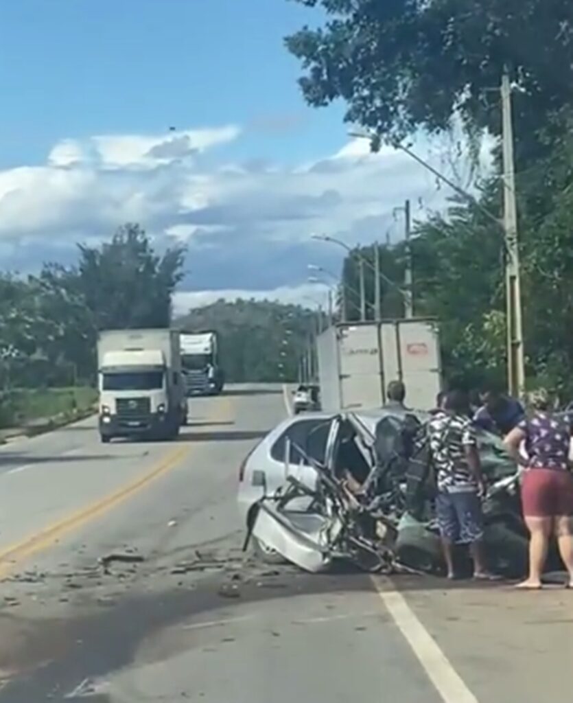 A Colisão envolveu um Fiat Palio cor cinza e um caminhão baú. O fato ocorreu numa reta um pouco antes do conhecido Posto Curigão. O motorista do veículo de passeio ficou preso as ferragens mas está consciente.